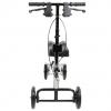 The steering column and knee post are both easily adjusted to accommodate users from 5'2" to 6'4" by using the height adjustment knobs. The handlebars can also be folded down using the lever at the base of the steering column.