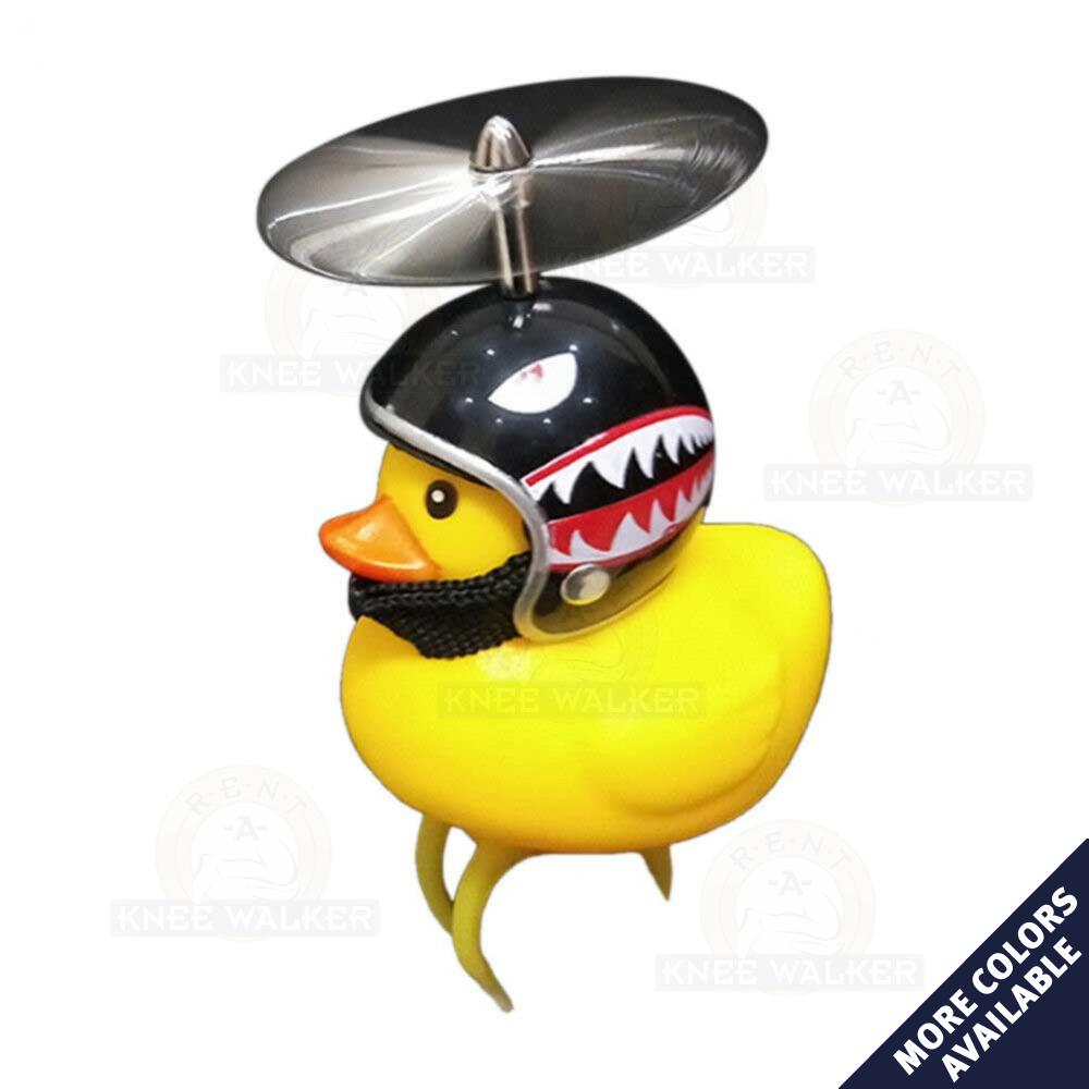 - How do you make a duck horm even more fun - you add a propeller to the helmet! These adorable and fun little yellow ducks are the perfect size to fit on your handlebar. They do double duty as a safety light and also have the trademark "squeaky" horn you know from a traditional rubber duckie.