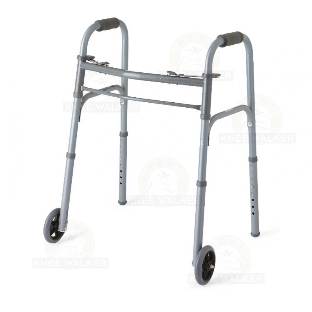 Walker-Two Button Folding Bariatric Junior 5 in Wheels by Medline