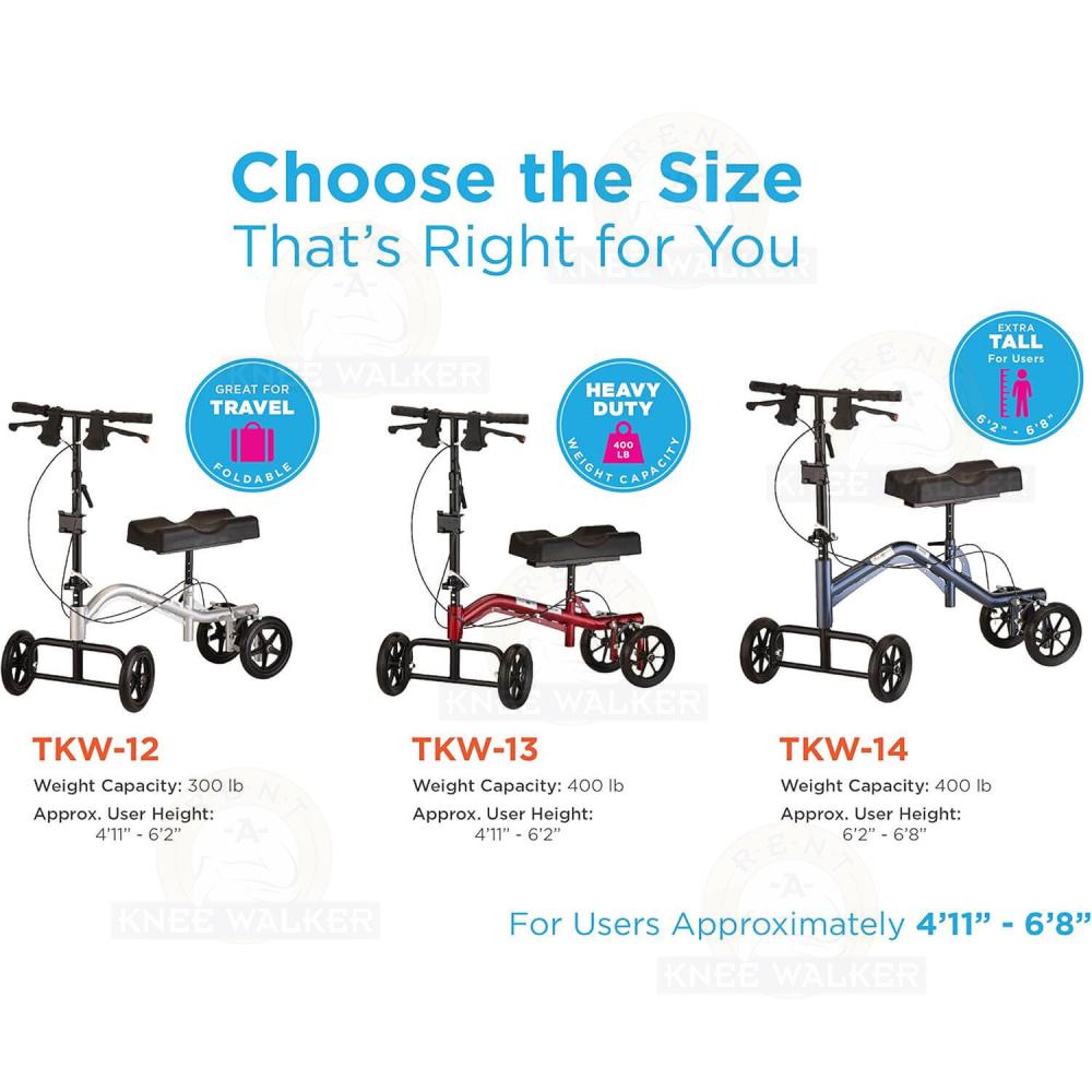 - This heavy duty knee walker with 400 lb weight capacity is ideal to provide non-weight bearing mobility for ankle, foot or Achilles injuries. Great bariatric alternative to crutches. For users 4’11” - 6’2”.